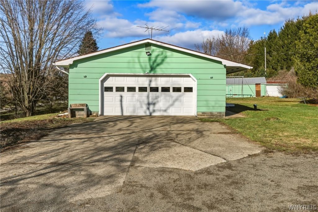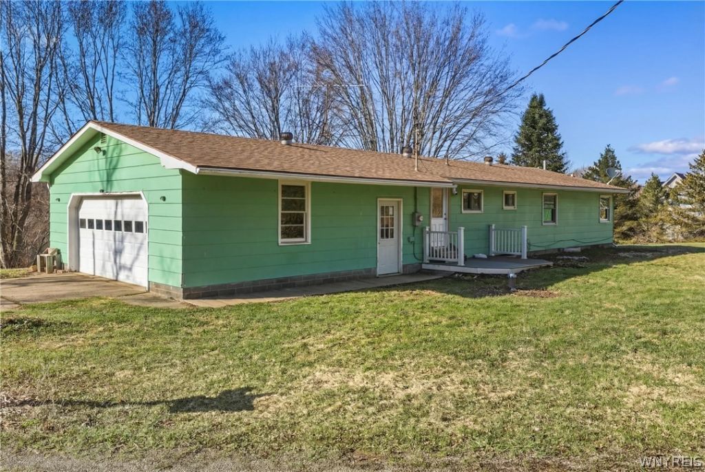 Welcome to this 3-bedroom, 1.5-bath ranch nestled on approximately 2 peaceful acres. Step inside to find fresh paint, updated flooring in the kitchen and living room, and a bright, welcoming layout perfect for everyday living. The spacious dining & living area flows nicely into the kitchen, making it ideal for both relaxing and entertaining. The full, partially finished basement adds incredible bonus space, featuring a rec room and built-in bar-perfect for hosting gatherings, game nights, or creating your own personal retreat. The new door in the Kitchen leads outside to the Trex patio where you can sit relax and with coffee or have a BBQ. Enjoy the open yard with plenty of room to roam, garden, or simply take in the surrounding countryside. A two-car garage with newer garage door provides ample storage or workshop space and convenience year-round. With some recent updates already completed and room to make it your own, this property offers a great opportunity to enjoy country living with comfort and space. Arcade Electric and additional option to heat with the wood stove in the basement. Great location only minutes to Arcade for shopping, restaurants, banking and more. Agents sq ft measurements first floor and finished basement rec area equal 1,543 sqft. .