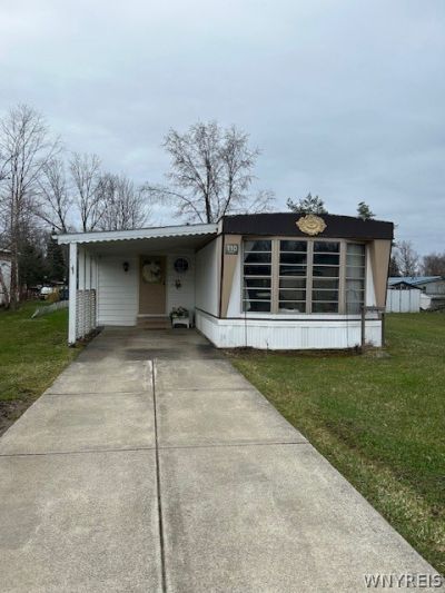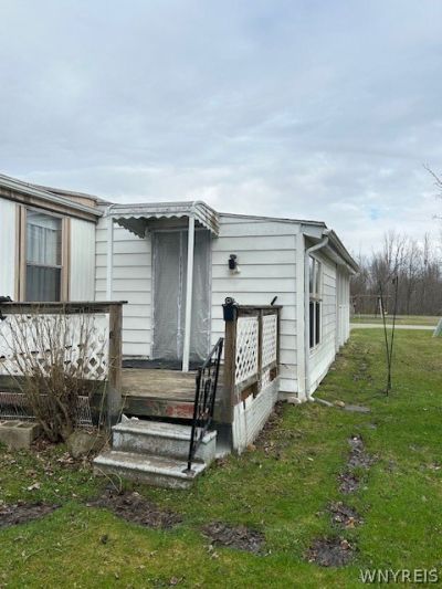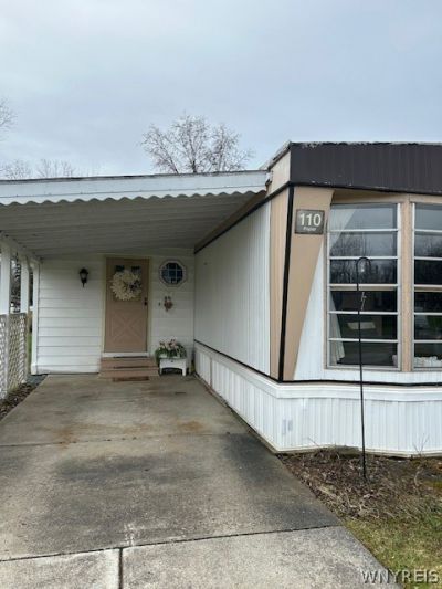 Must See this perfectly located near the entrance of Marilla Country Village manufactured home community and directly across from the community park sits this very affordable, tastefully decorated, recently updated, well maintained, two(2) bd, 1 ba manufactured home that includes a cemented drive carport, a shed with a loft, a living room that contains a brick wall faux, two side-outs additions, one side-out is 8 x 12 and expands the living room area, itself, and the other, a 10 x 16 side-out that incorporates a front entrance, foyer, large closet, sitting area, as well as a rear door that leads to the back deck. The step up eat in kitchen boasts grey laminated hardwood flooring, an island style set-up of black cabinetry, a double sink base area, stove, and refrigerator that opens up to a bonus room with a bay window that overlooks the front yard and is currently used as a gym but could easily be a family room/office/den/study/bedroom. The bathroom host a double sink vanity, bath/shower unit, as well as a laundry area. Ample closets, Central Air. The Central Air unit contains a furnace internally that could easily be used if someone chose to use it. The roof of the manufactured home is rubber and the two side-out addition roofs are shingled. The floor underneath has been updated with new wood and insulation - see pictures in attachment. Lot rent is $405/ a month includes garbage, water, sewer, road snow plowing. This home works whether this is your first home buy or your last. Must be park approved.