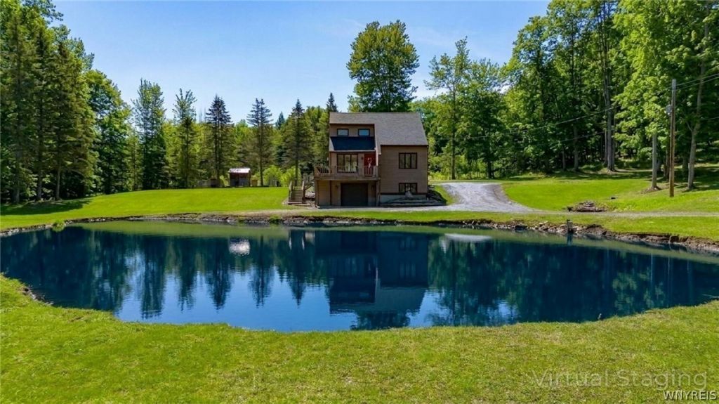 Every so often, a property comes along that encompasses and embodies the essence of what means to experience the natural beauty, tranquility, and privacy of a home, offering not just a place to lay your hat, but a sanctuary where every moment feels like you are on a retreat. Located in seclusion with a mixture of hardwoods and pines on a two parcel, over 5 acre plot. Strategically placed in between Arcade and the historic East Aurora Village (~12 minutes). You are sure to be drawn in as you arrive upon 130 Taylor Heights, taking notice of the great exterior care and attention to detail the current owners have bestowed upon the entire property. The home was built with custom care and quality craftsmanship. Indoor and outdoor living flow seamlessly with numerous exterior points to enjoy. The wraparound deck overlooking the pond is one of the main features; enjoy in those early morning hours, or a relaxed retrieve after a long day away, or anytime in between. Truly an oasis, with tranquil surroundings will make you feel as if you are indeed where you are supposed to be- right at home! Chicken coops and animal enclosures will remain with the property, a plus for that new buyer possibly looking for a small homestead. Inside, you will experience the main floor layout which basks in abundant natural light. Meticulous care has been given throughout. Upstairs are the sleeping quarters, with an open loft with a live edge overlook. There is room to add a third bedroom if desired in the daylight- walkout basement from the garage. Newer utilities, roof (one year), and a full home generator are sure to make you feel the security you deserve. Showings begin at the Open House scheduled for Wednesday, April 15th from 5-7pm. Open Houses will follow with on Saturday, the 18th (11-1) and Sunday, the 19th (11-1). (offers due 4/21). Come see, breath and taste the essence of what it is to be finally at home at 130 Taylor Heights.