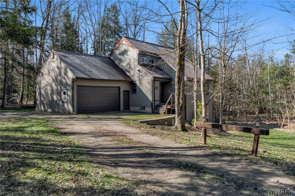 28 Woodstock Road in lovely Concord NY is a contemporary chalet style home, situated in the highly desired Craneridge community, that can be a year round residence or an escape from the hustle bustle of every day life! Situated across the street from the ever developing Kissing Bridge resort and a short walk to Sprague Brook park, this home has so much to offer. Residents in Craneridge have access to the pool, basketball court, playground and walking trails, offering a year-round active lifestyle. The home itself sits on a beautiful wooded lot, surrounded by the sights and sounds of nature at its finest, that you can enjoy from the large 1more room with an exterior walkout and so much flexibility! The attached garage is a nice bonus, and not something you will find with every home in this community. The square footage differs from public record due to the finished walkout basement.2x22 deck off the rear of the home. Walk inside and you will find an incredibly cozy and comfortable living space, with tall ceilings, wood burning fireplace and tons of natural lighting. The galley style kitchen is perfectly situated and opens to the rear bar/family room for easy entertaining, and every day functionality. Upstairs you will find two bedrooms and a beautifully updated full bath, while the lower level basement space offers even more room and so much flexibility with the exterior walkout. The square footage differs from the tax record due to the finished walkout basement (floor plan).
