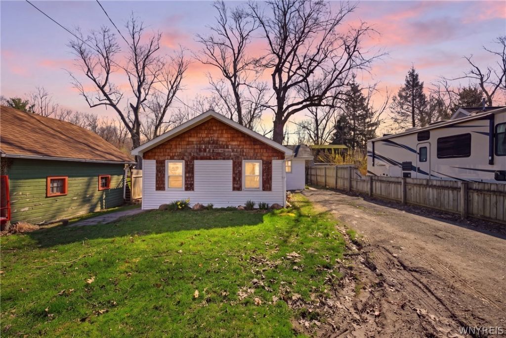 8597 Florence Ave is the perfect opportunity whether you are looking for your first home, a summer escape, or your next investment property. This 2 bedroom, 1 bath home offers 900 sq ft of beautifully updated living space just an 8 minute walk to public beach access on Lake Erie. This home blends comfort, style, and location. Inside, you will find brand new countertops, hardwood and vinyl flooring, and recessed lighting throughout. The open layout creates a bright and inviting space perfect for relaxing or entertaining, while two spacious bedrooms and an updated bath add to the appeal. With a roof only five years old, this home is truly move in ready. The fully fenced backyard with patio and deck provides the perfect place to unwind. Short term rentals in the area range from $100 - $250/night during peak season (June - August) Location is everything here. You are about a mile from Mickey Rats Beach Club and Evans Town Park, with several other beaches, bars, restaurants, and grocery stores just minutes away. Angola's brand new bike and walking path down Lakeshore Road makes it easy getting there! Whether you are looking for a cozy getaway, full time living, or a short term rental investment, this one checks all the boxes. Square footage was measured by appraiser. Updated survey can be provided.
